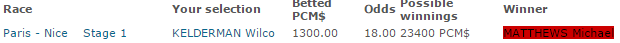 Normally though there will only be one stage bet for a specific race at once and having more is only a rare excemption when I don`t have time one day but want it to be covered. So when there is an active one, it usually always is the next upcoming stage.