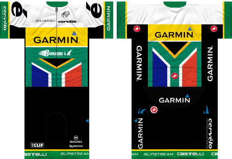Riders are allowed to have any national champion jersey design they want, as long as it has been approved by the national federation and the UCI. Correct me if I'm wrong, but that is my understanding. The South African Mountainbike champion, Burry Stander, has a similar design on his Specialized kit. |