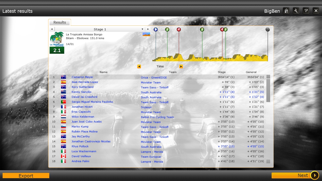 On Stage 1 of Tropicale Amissa Bongo Race I was 4th and 5th behind C. Meyer J.Herrada and R.Sutherland so it was great day for my team. Also I was 2nd on New Zealand National.