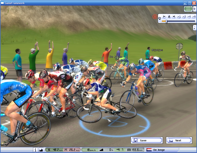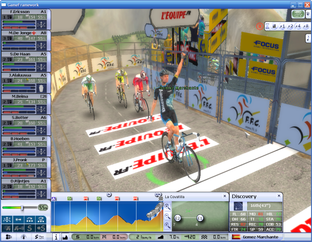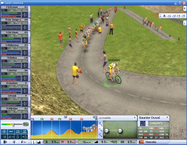 In front, Mancebo is trying to breakaway from his group.