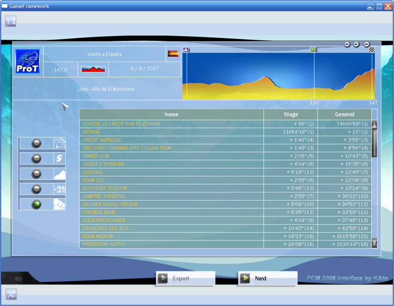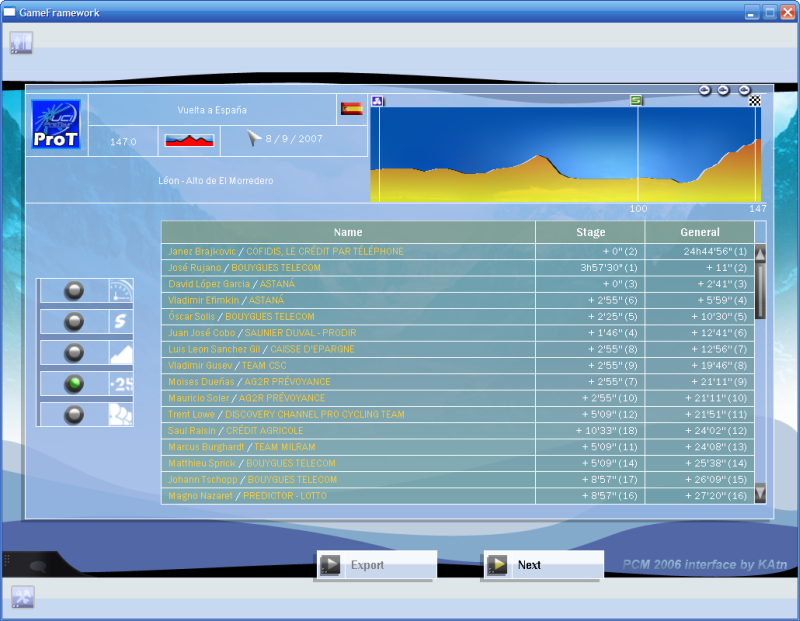 | 1 | José Angel Gomez Marchante | DISCOVERY CHANNEL PRO CYCLING TEAM | 24h43'15 | | 2 | Francisco Mancebo | SAUNIER DUVAL - PRODIR | + 48 | | 3 | Janez Brajkovic | COFIDIS, LE CRÉDIT PAR TÉLÉPHONE | + 1'41 | | 4 | Iban Mayo | LIQUIGAS | + 1'44 | | 5 | Manuel Beltran | COFIDIS, LE CRÉDIT PAR TÉLÉPHONE | + 1'47 | | 6 | Julio Alberto Perez Cuapio | AG2R PRÉVOYANCE | + 1'48 | | 7 | José Rujano | BOUYGUES TELECOM | + 1'52 | | 8 | Franco Pellizotti | UNIBET.COM | + 1'55 | | 9 | Joaquin Rodriguez Oliver | ASTANÁ | + 1'57 | | 10 | Óscar Pereiro Sio | CAISSE D'EPARGNE | + 2'36 | | 11 | Andrei Kashechkin | UNIBET.COM | + 2'38 | | 12 | Samuel Sánchez Gonzalez | DISCOVERY CHANNEL PRO CYCLING TEAM | + 3'21 | | 13 | José Enrique Gutiérrez Cataluña | FRANÇAISE DES JEUX | + 3'27 | | 14 | José Serpa | TEAM MILRAM | + 3'36 | | 15 | Pietro Caucchioli | LIQUIGAS | + 3'37 | | 16 | David López Garcia | ASTANÁ | + 4'22 | | 17 | Denis Menchov | CRÉDIT AGRICOLE | + 4'59 | | 18 | Juan Manuel Gárate | TEAM CSC | + 5'05 | | 19 | Marzio Bruseghin | LAMPRE - FONDITAL | s.t. | | 20 | Giuseppe Guerini | T-MOBILE TEAM | + 5'08 | | 21 | Isidro Nozal | T-MOBILE TEAM | + 5'46 | | 22 | David Moncoutié | COFIDIS, LE CRÉDIT PAR TÉLÉPHONE | + 5'52 | | 23 | Gianpaolo Caruso | CRÉDIT AGRICOLE | s.t. | | 24 | José Antonio Pecharroman | CRÉDIT AGRICOLE | + 7'26 | | 25 | Vladimir Efimkin | ASTANÁ | + 7'40 |