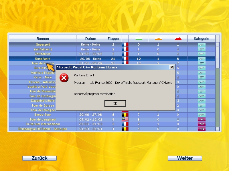Yes this are custom tours of mine. They appear in all the databases??? Damn this sucks. I really don't know whre the fault could be. The 1903-2010 Tour database is working fine |
