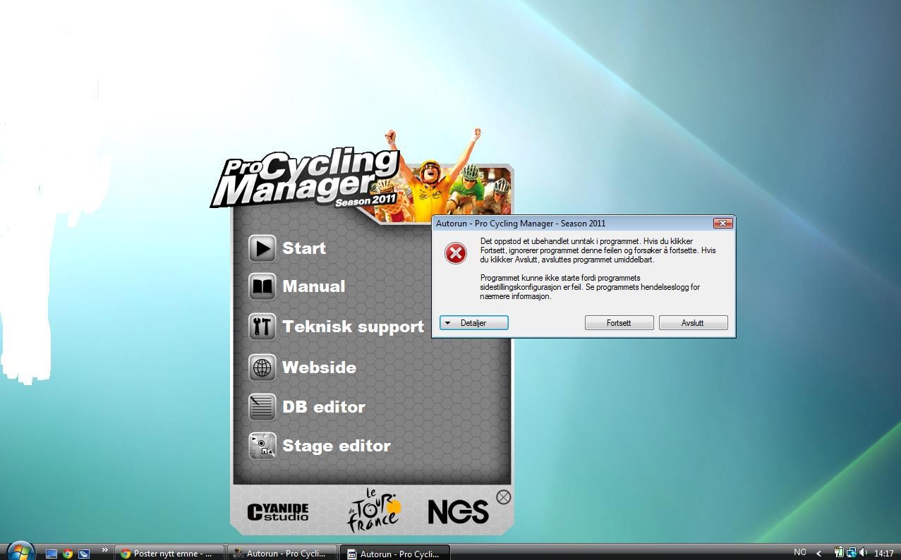 I bought PCM 11 yesterday from a local game dealer called Spaceworld, on CD.(Norway) I installed the game, but when im starting up, i get an error message (Shown on picture). I have reinstalled the game 5 times and it still doesnt work. Anyone know how to fix this?