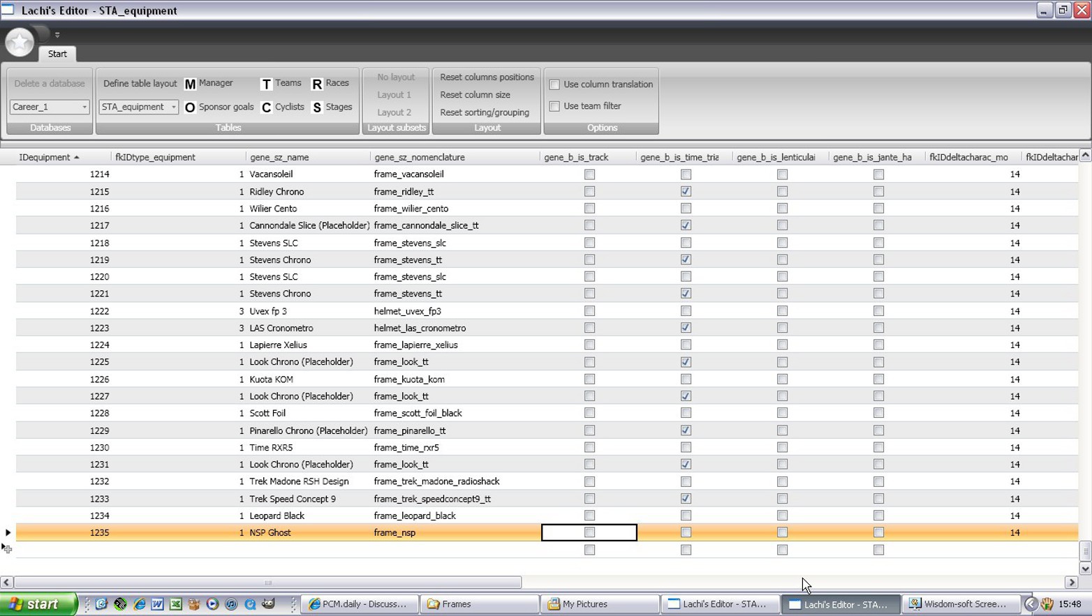 I've tried to change the name of the folders in STA_equipment_marques in Daily's Expansion Pack, and I have also deleted some of them. I have also tried to delete some Equipment which didn't had any folders. To get each Frame, Helmet, and Wheel into the right folder the only thing I changed was the fkIDequipment_marques column. Is this correct?