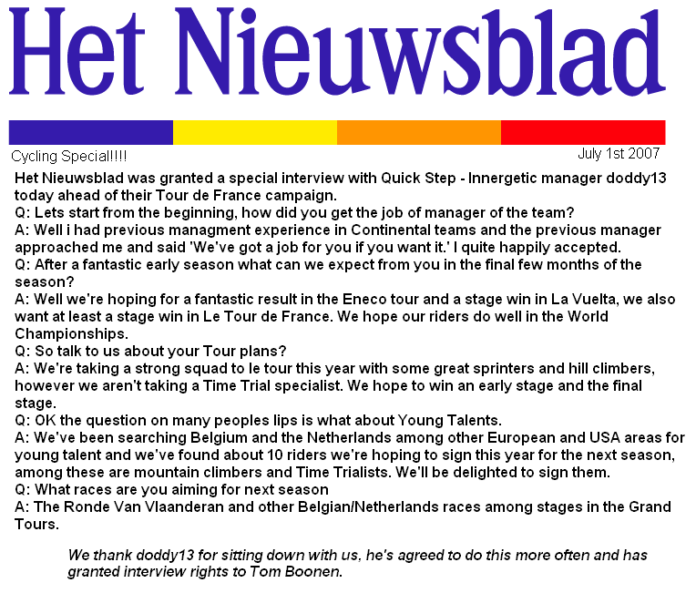 ok finally before we start real racing reports lets have a read of this EXCLUSIVE interview with Het Nieuwsblad