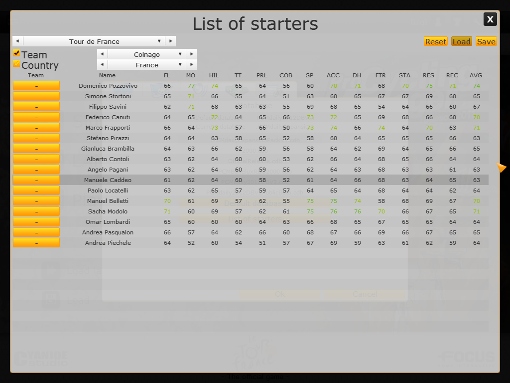Looks the same as the PCM11 tool with the only exception that changing the team/country has no effect on what's displayed in the list. The list will always contain all riders from the database. |