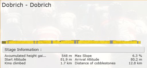 and the Dobrich GP (Bulgaria) This is a cobblestone race.and completely revised. Became slightly longer but better gameplay. The river network howvernis not the real one....but I think you can live with that.