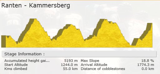 Don't be afraid of the 18 % nearly all the route is between 7-9% and the 18% is the famed,feared Hohe Kammersberg (finish actually)