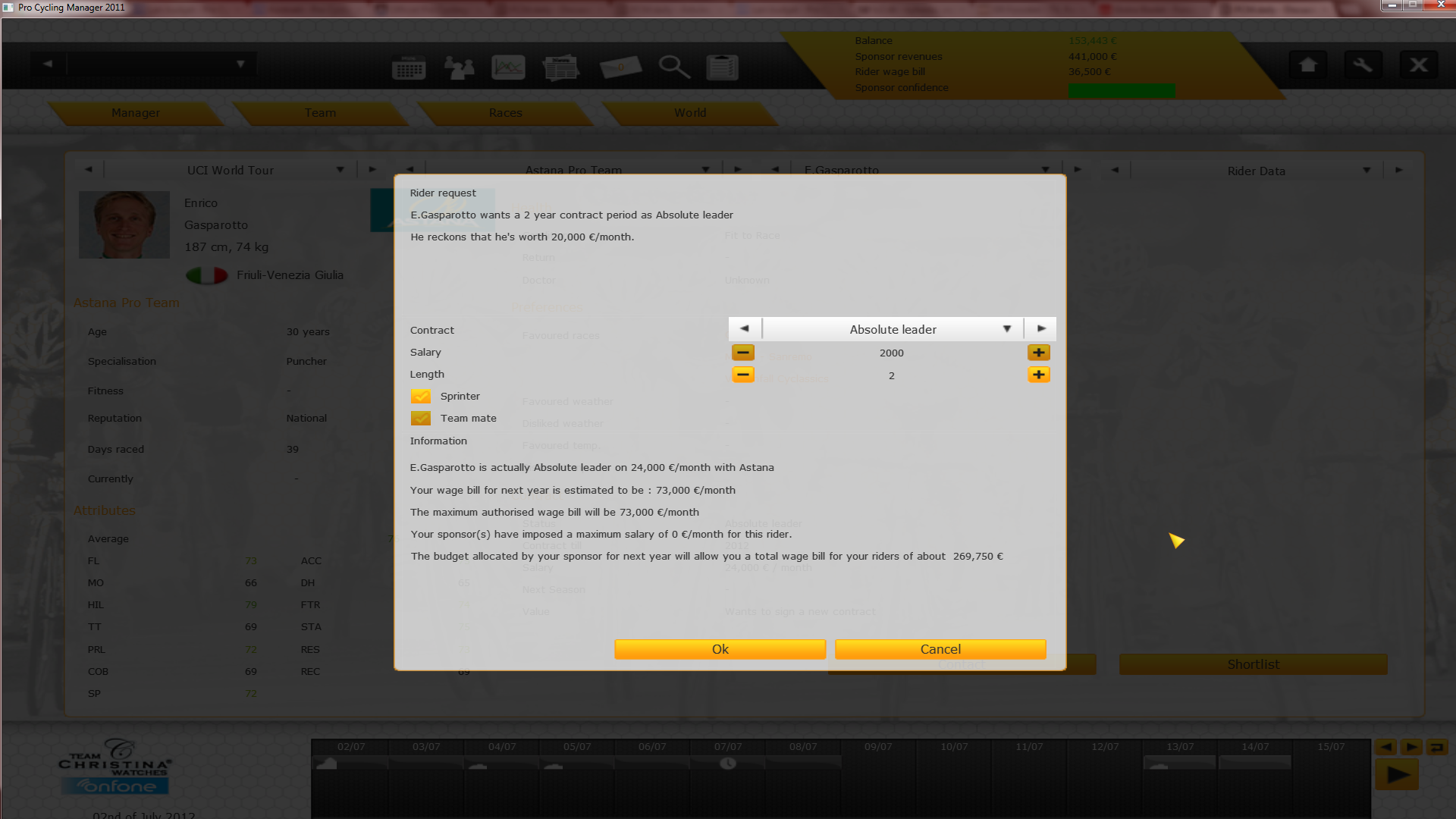 I´m having a problem with not being able to sign more than a handful of riders, as my wage bill for the next season is set very low. This is despite the fact that I managed to secure a new main sponsor on a 2 year contract worth about 3 million euros.