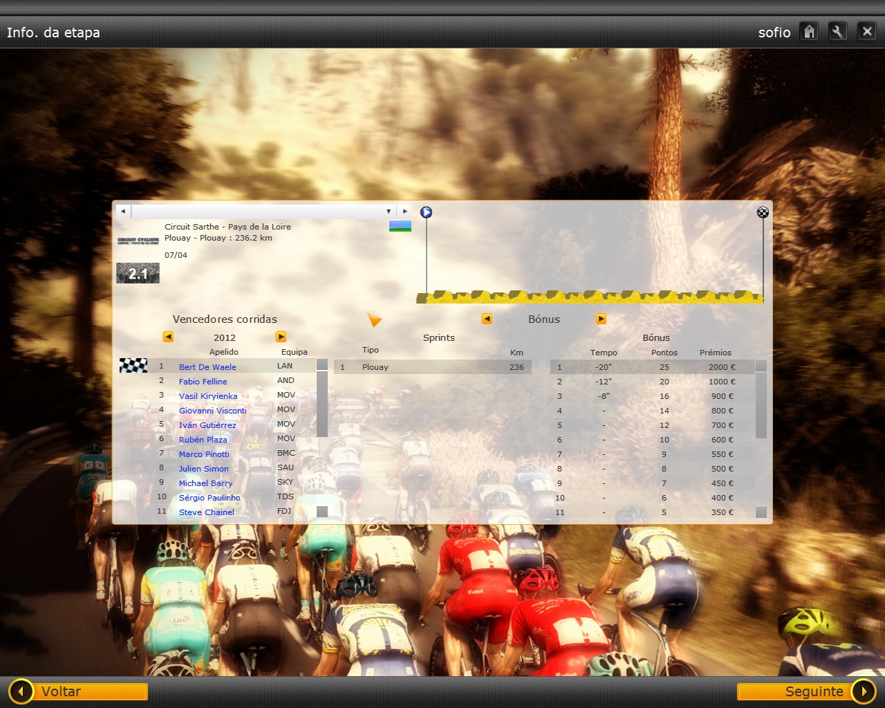Hello. In the 1º season. afer 4ª and last stage of circuit the satrhe on day 6/04, goes to day 7. in day 7/04 apears a new stage of circuit the satre with the name plouay - plouay. obvios i dont have any cyclist choose becase the circuit ends at 6/4.
