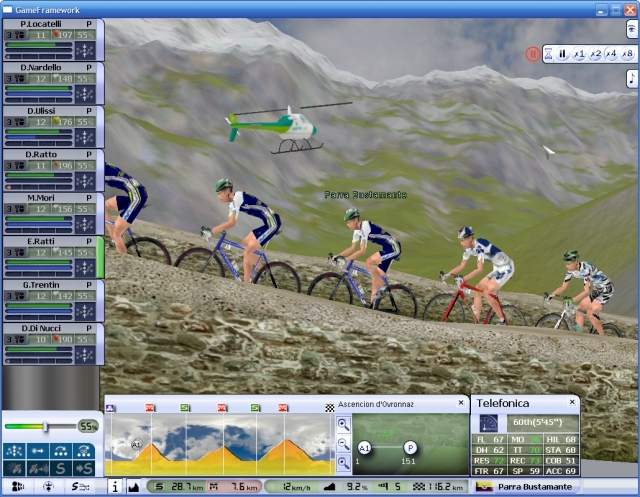Here we are at the first climb with Telefonica leading the peloton. The helicopter is following the pack closely.