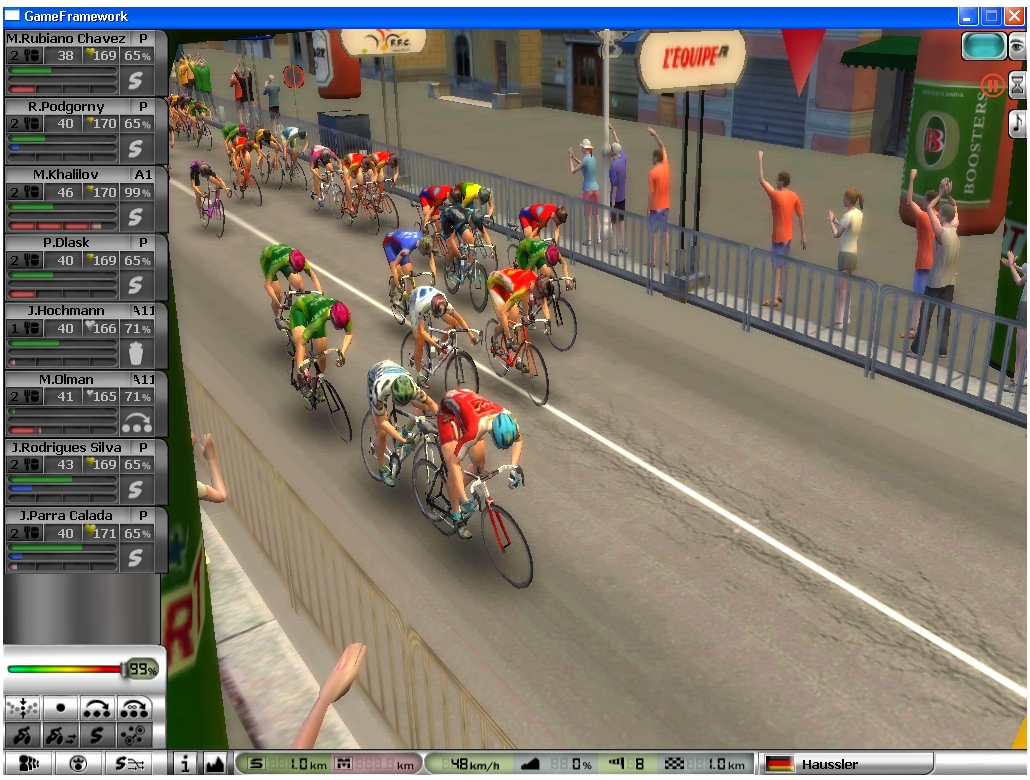 With 1km to go and it's Haussler of Virgin that is leading, but he has Bettini on his wheel, can he come around him to claim victory?