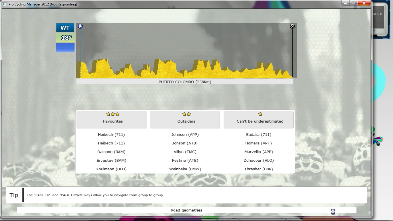 I have recently made a fantasy stage in the Canary Islands. I got everything in order, then added to DB, so on and so on. I tried to open in PCM 12, and my game froze as soon as I got to loading "Road Geometries". How can I fix this issue? Thanks! |