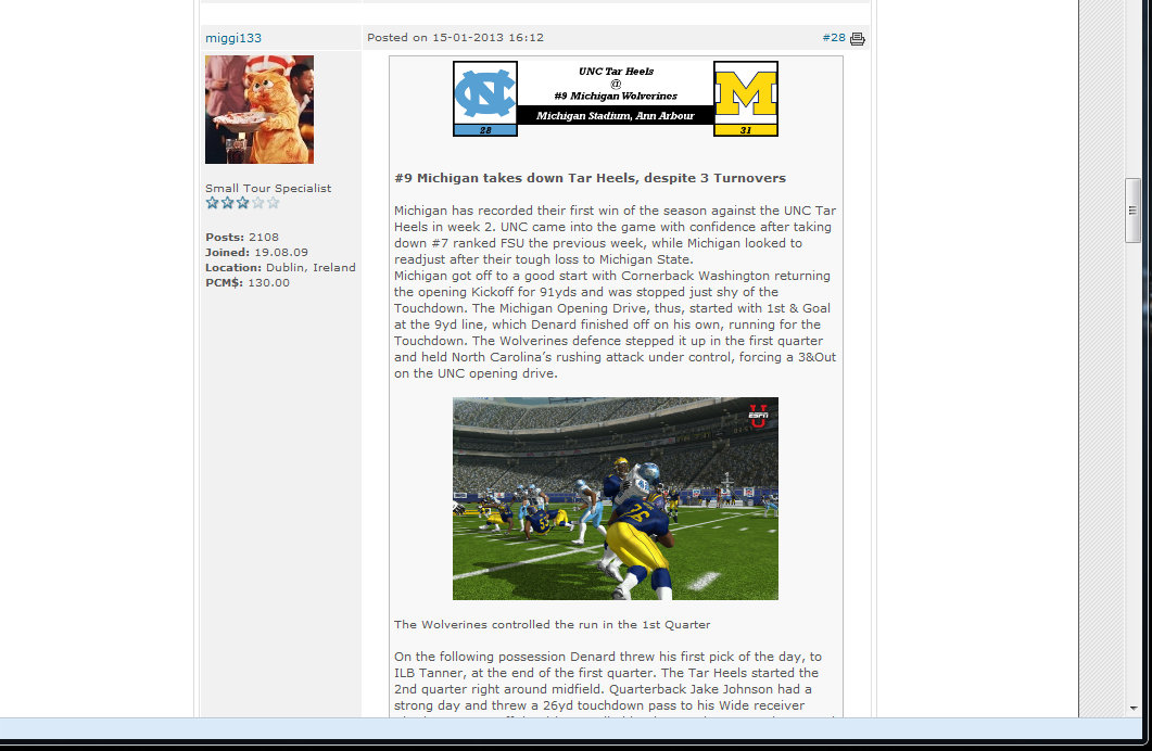 Well, the forum does resize images, but I haven't seen any change.. sometimes I do see images in a miniature, but after a few refreshes it's all normal again. I attached a screen of how I'm seeing your Madden story thread, perhaps it's what you'd call "normal"?
