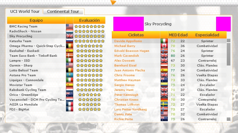 When I chose Career mode, where must to appear teams' yerseys and sponsors' names, only I can appeciate pink-squares. E.g.: in the list, appears the name of the teams, and when I click in SKY Procycling, there appear riders, their nationalities... but instead of putting SKY Procycling, and its yersey, there are two pinky squares.