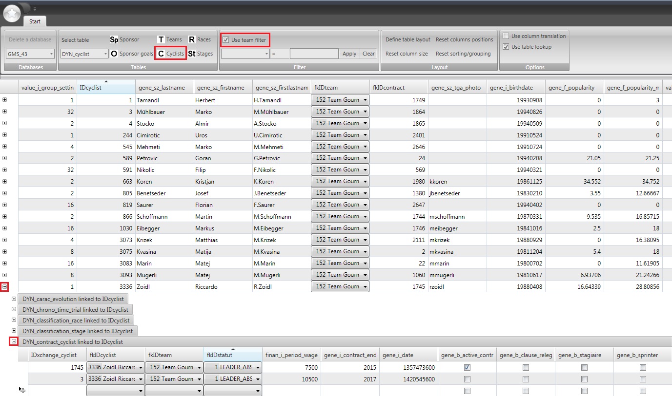 To make a rider retire at the end of the season, you have to make sure that the contract ends in this year. Also you have to edit the column gene_b_will_retire in DYN_cyclist. Maybe you also have to edit fkIDcyclist_future to RETRAITE |