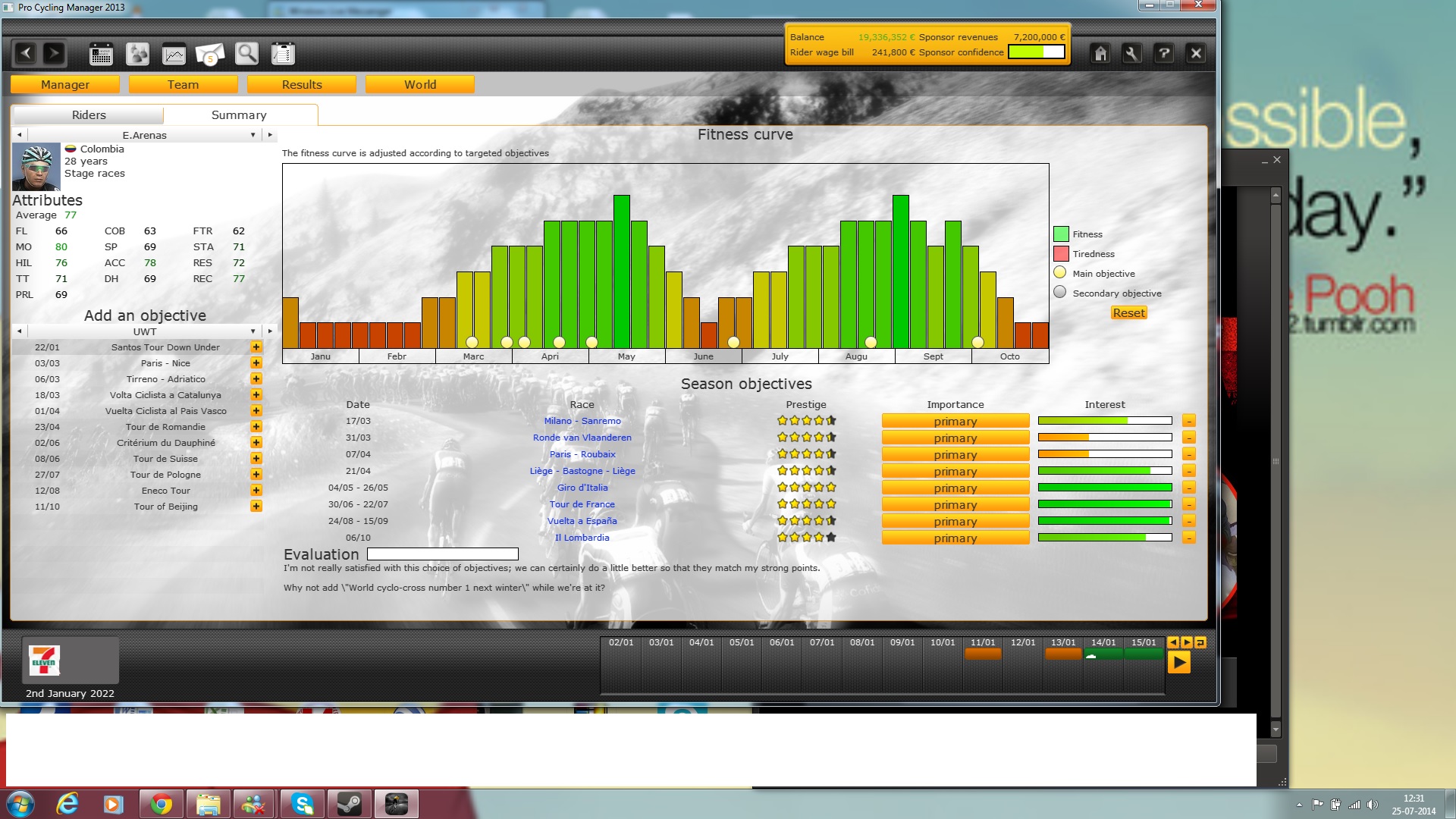 I attached the picture to show that even with no objectives, the riders still has a training programme. Nothing happens if I hit the reset-buttom.
