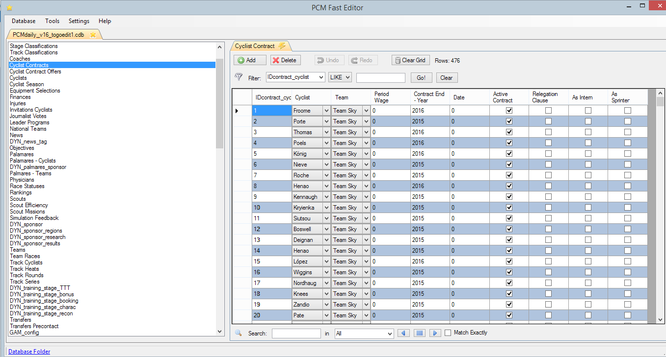 Find your rider in DYN_contract_cyclist and there should be a column with the ending year of your contract. Not sure if it works like that in Pro cyclist mode too, but I guess it should. |