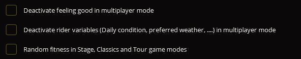 I think that's what makes the feature so good. I don't know your stats, but I feel like it adds some realism, or at least unpredictability, when a weaker climber can keep up with the best ones on a really good day, but loses quite a bit on a bad day. I recently scored a 7th place with Arashiro at the FW with a +4 daily shape, which was awesome and which wouldn't have been possible withouth it, but I feel like it's a kind of result that would be possible irl, too. Though I'm glad they made it optional, and I completely agree with Fresh D that Cyanide needs to do something about the time gaps.,,