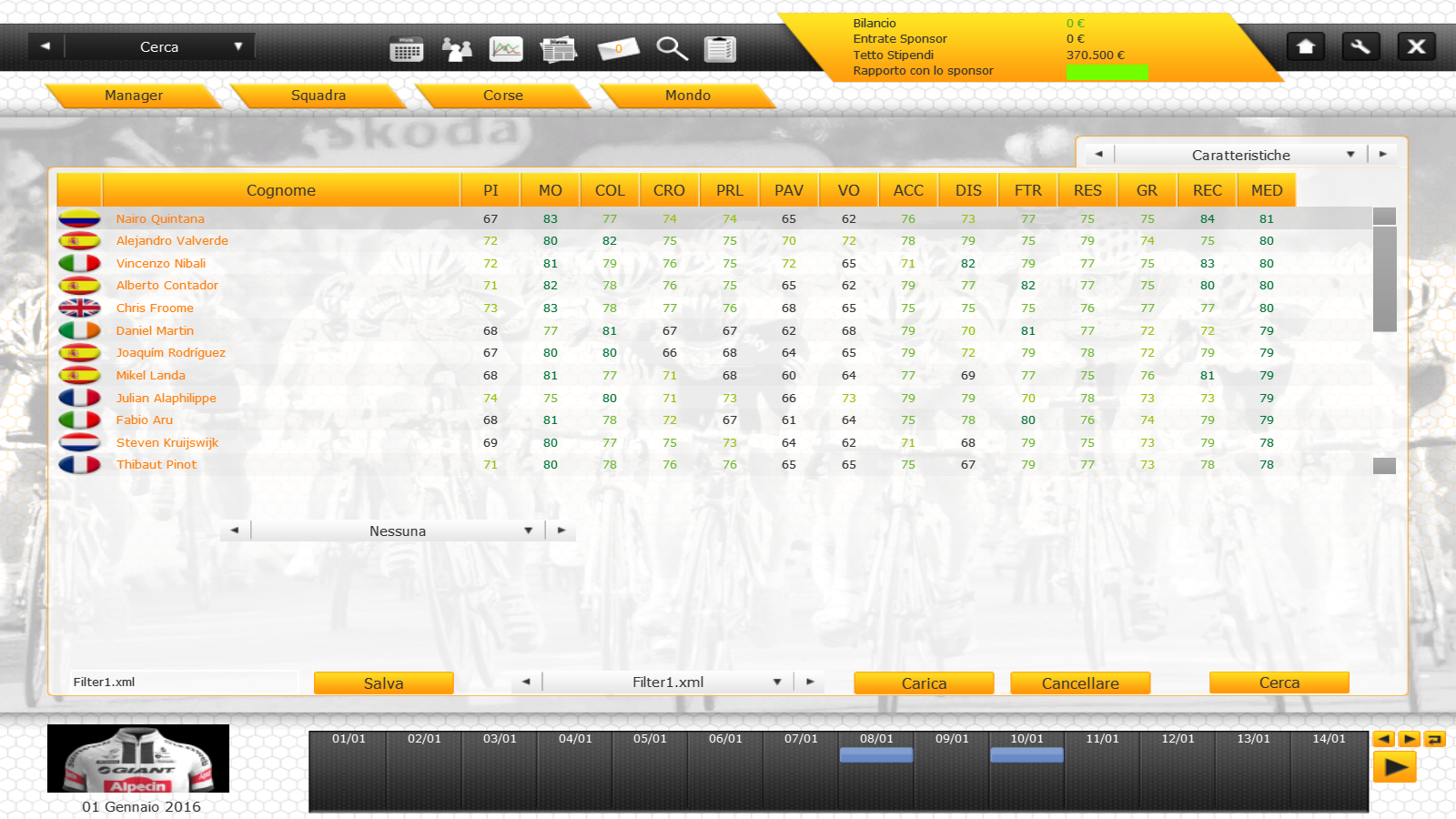 Right....Here we go....planned teams in database. I will be copying the stats from the PCM Daily 2016 DB for PCM2016.