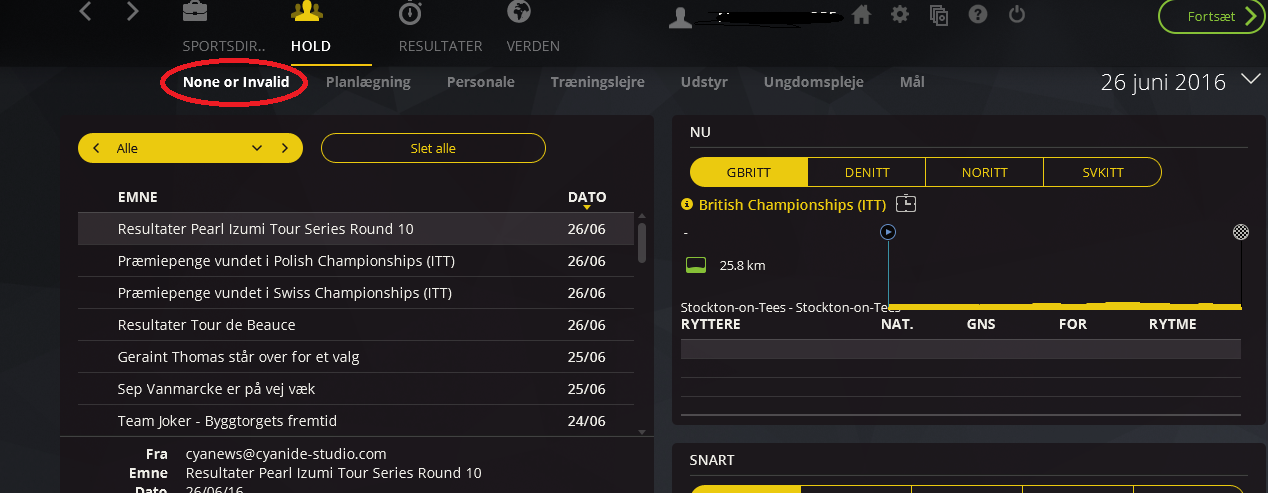 I have a problem with my career game. I can't se my riders and the information about them. Now it says 'none or invalid'. I post a screen so you can see the problem. It is on danish.