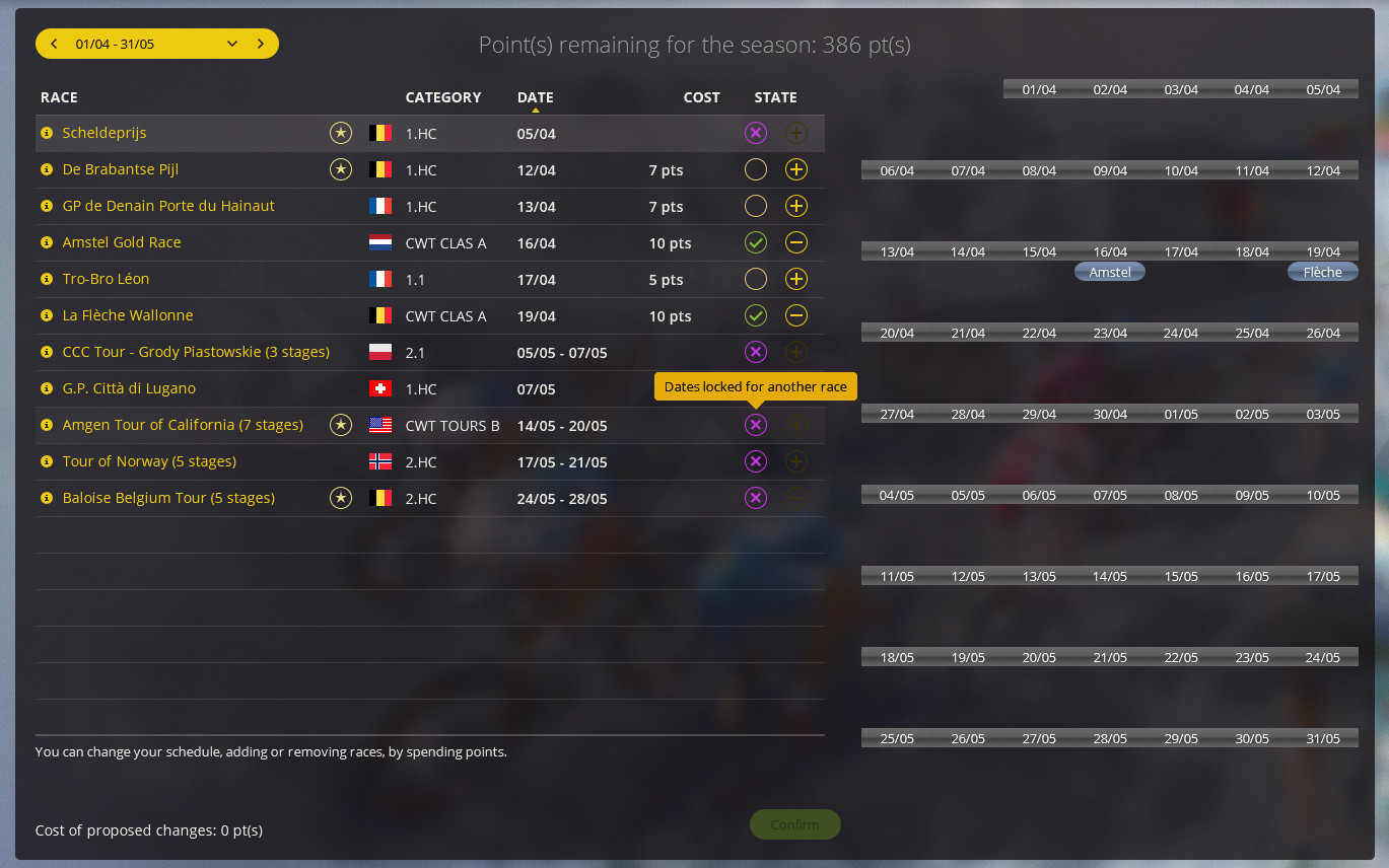 So now the dates when the giro would have been are still locked, the giro disappeared and i cant put any races in this timeframe...