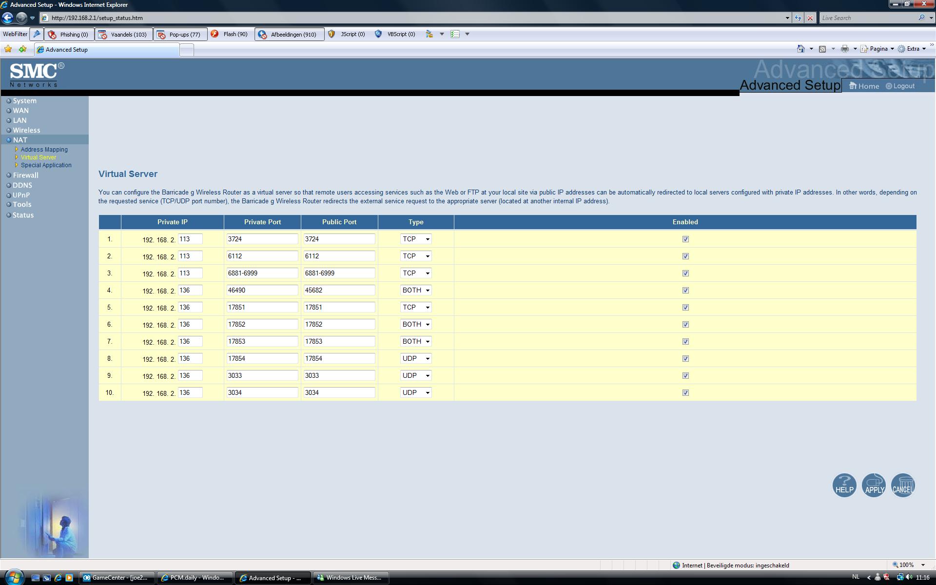 Also, check if your windows firewall is running. If it is, disable it. There's no need for it anyways when you manage your routers firewall.
