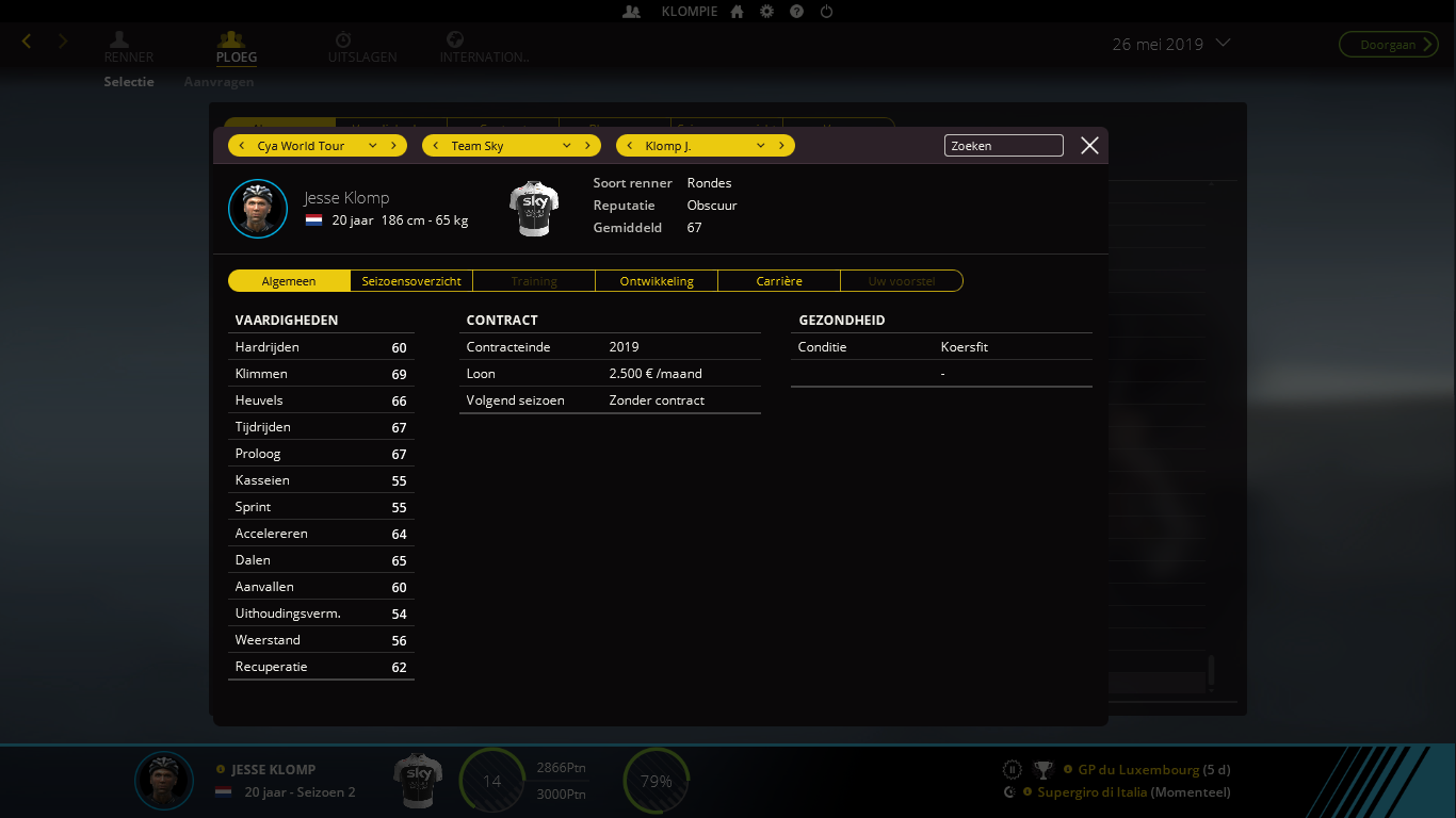 As a attachment a screenshot of my career and the stats of my pro (in Dutch).