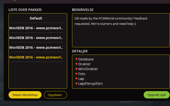 I have a problem when I sm trying to download for exsample WORLDDB 2018 v1.03, i just get WORDLDB 2016 in my database for PCM 2018, with worng names. Can comebody helo me fix this with a easy soulotion so i can start playing the game?[img][/img]