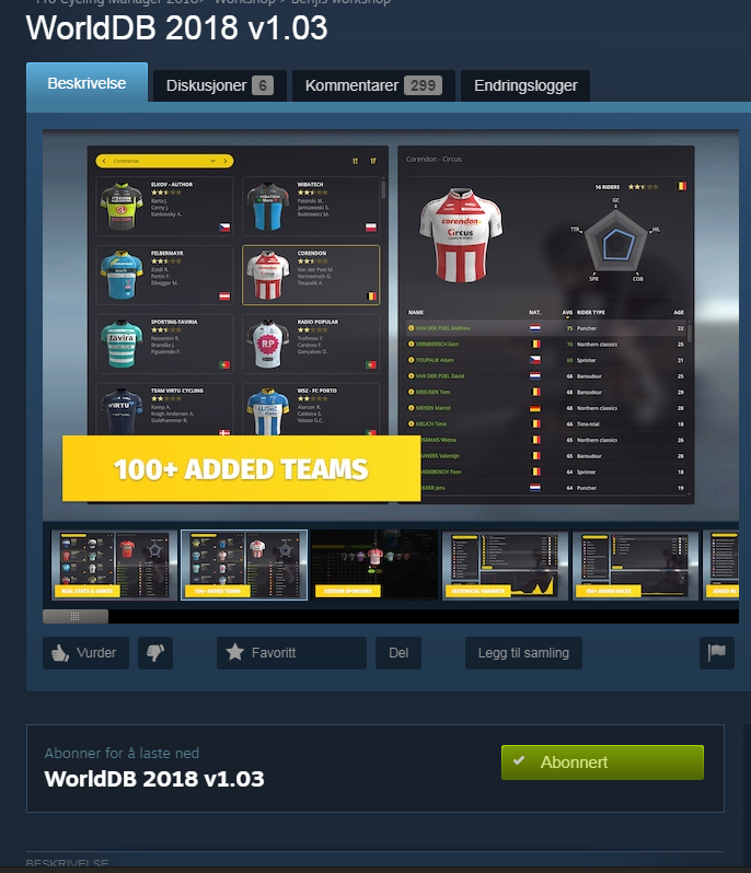 I have tried that, but the when I subscribe the worldDB 2018 they just show up in my database as worlddb 2016. When I treid to selct one of those the real name of the cyclist does not show. So i think this is really strange.