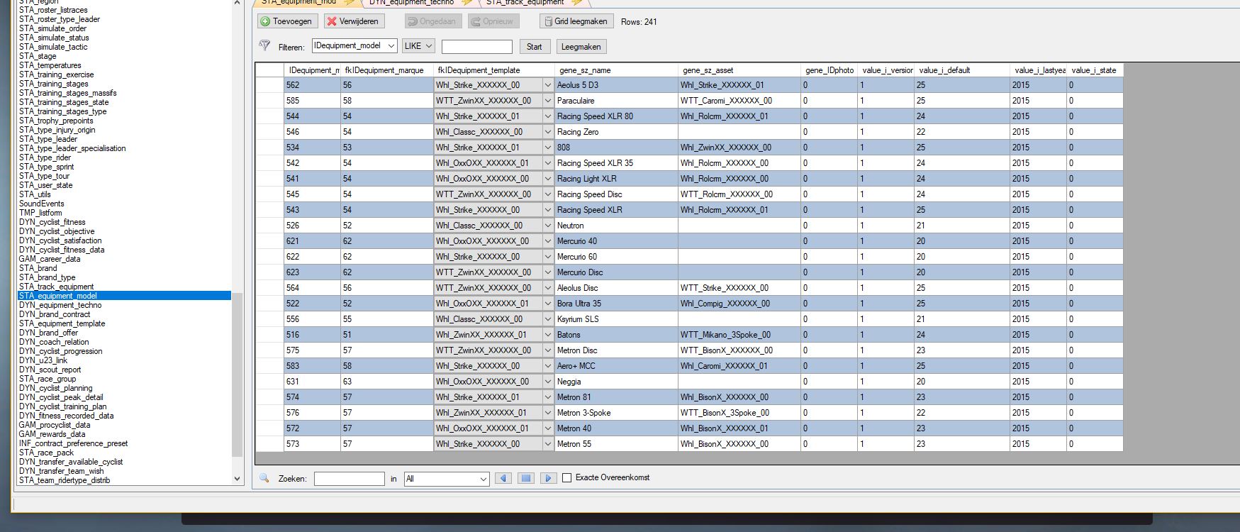 Sta_equipment_model, can't remember the name of the columns, but it should there