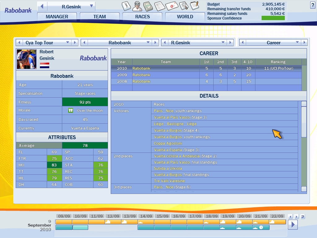 I am in 2010 and Robert Gesink still is 21 years old, anyone know why he didn't get old. And after i send him to training camp he get 83 at mountain. But the good part is that he can win anytime a u25 jersey