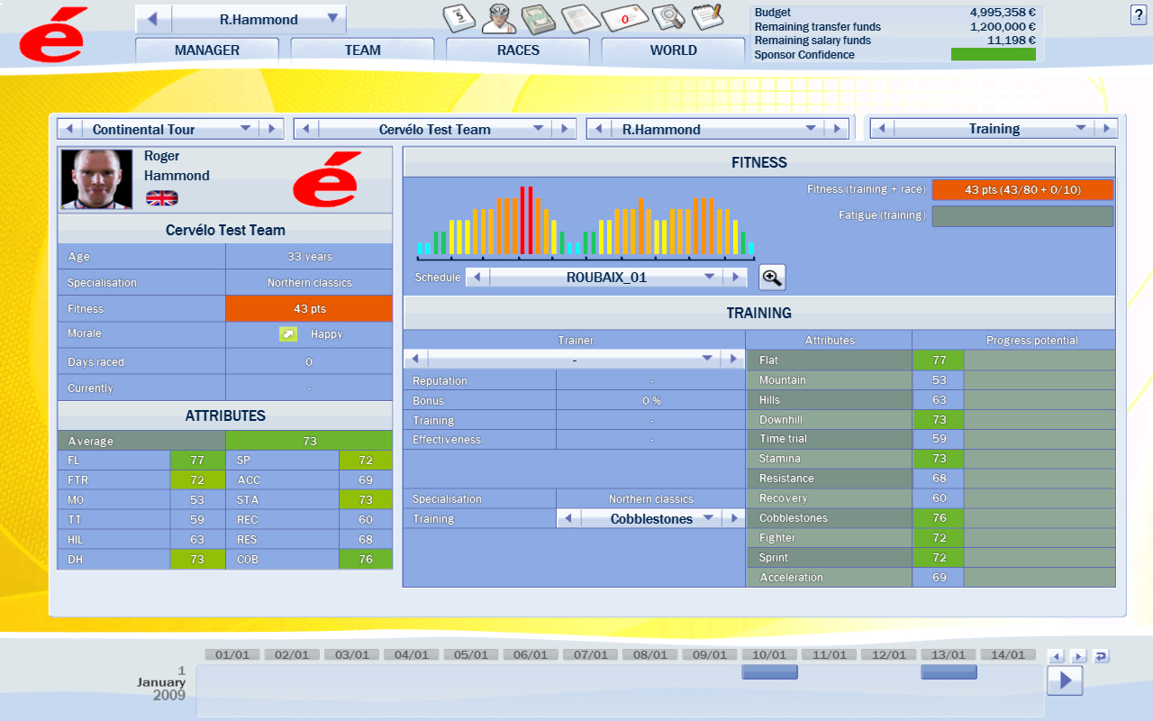 Isent the Iglinskiey brothers from Kazakhstan? Theyre from Belarus in the db.I know this isnt a bug and easy to fix but i didnt know where else to put it. And one more thing, Nicholas Roche was 13 overall in Vuelta Espana this year and on the db his mountain stat is 64 or something, a bit low maby? Will the 2009 route in Giro and Tour be in the v2 package? |