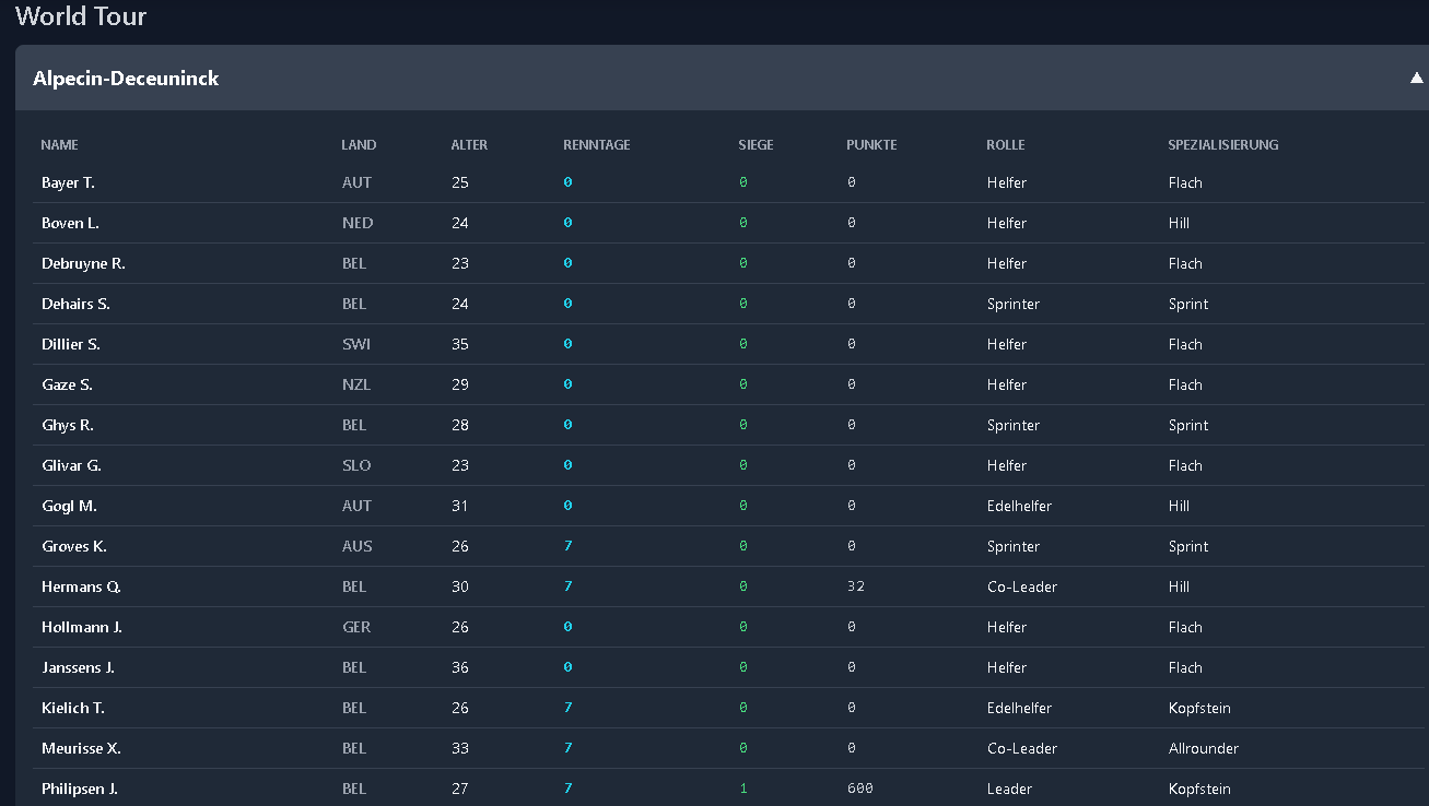 I am pretty happy with my rresults so far. Especially the draft system at the end of the year works quite good as well as contract renewals. Races work quite good, balancing is already quite ok. Calendar needs to be filled a little bit. But for testing the mechanics its not necessary to have much races. Here is a short Video of the general game.