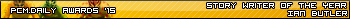 Best Story Writer: Ian Butler (38%). Runner-up: tsmoha (25%) Ian can't stop winning, as takes this award for the second year running.
