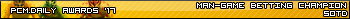 Man-Game Fantasy Betting Champion: SotD (18644 PCM$). Runner-up: wackojackohighcliffe (13960 PCM$).