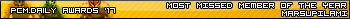 Most Missed Member: MARSUPILAMI (30%). Runner-up: Avin Wargunnson (25%).