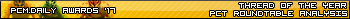 And that ends the awards! Congratulations to all the winners, once again. As usual, credit goes to emmea for creating the signature design used for the userbars. |