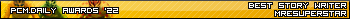 Best Story Writer: Mresuperstar (64%); Runners Up: kiserlovski01, TheManxMissile (18%) As long as Mre keeps updating his Diamonds in the Rough story, he basically seems to have this award locked down. He's a living legend who has given so much to the site and managed to translate his practice on here into a real career. It's hard to overcome that kind of story.
