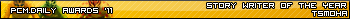 17, 18 and 19 votes were given to the top three - and in the end, Dark Dog by tsmoha got that one deciding vote. All the nominated stories were (and still are) excellent, and tsmoha's Dark Dog - with its excellent screenshots and writing - is no exception.