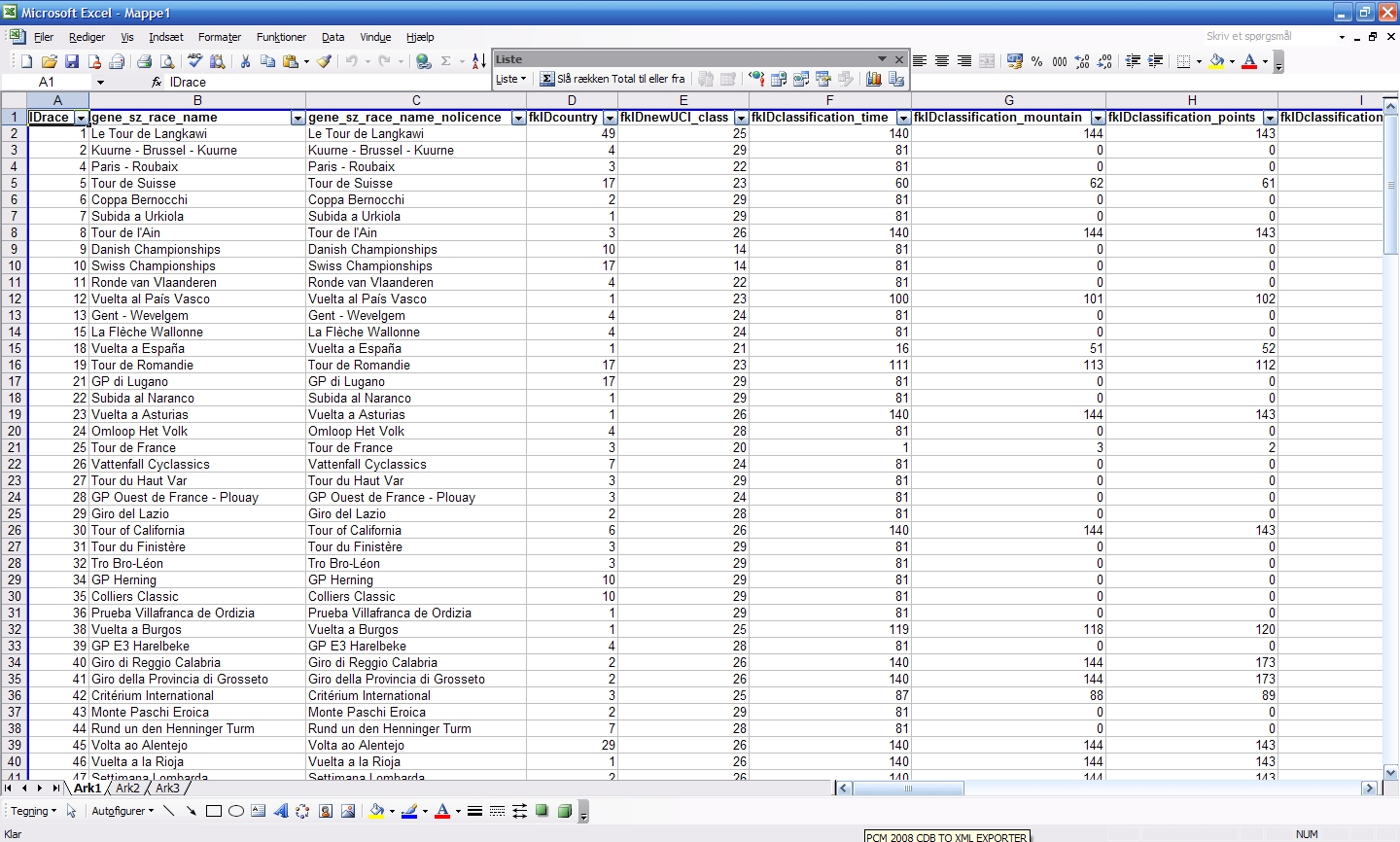 The Advanced Editor in Excel, showing STA_Race