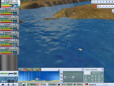 Now we see the problem, the river has flooded! Nevertheless, the race must go on - and finally the riders see dry land! :p