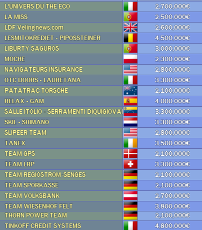 Photo Albums > PCM 07: General Screenshots > Continental Teams, list 2 First photo Previous Photo Next Photo Last photo
