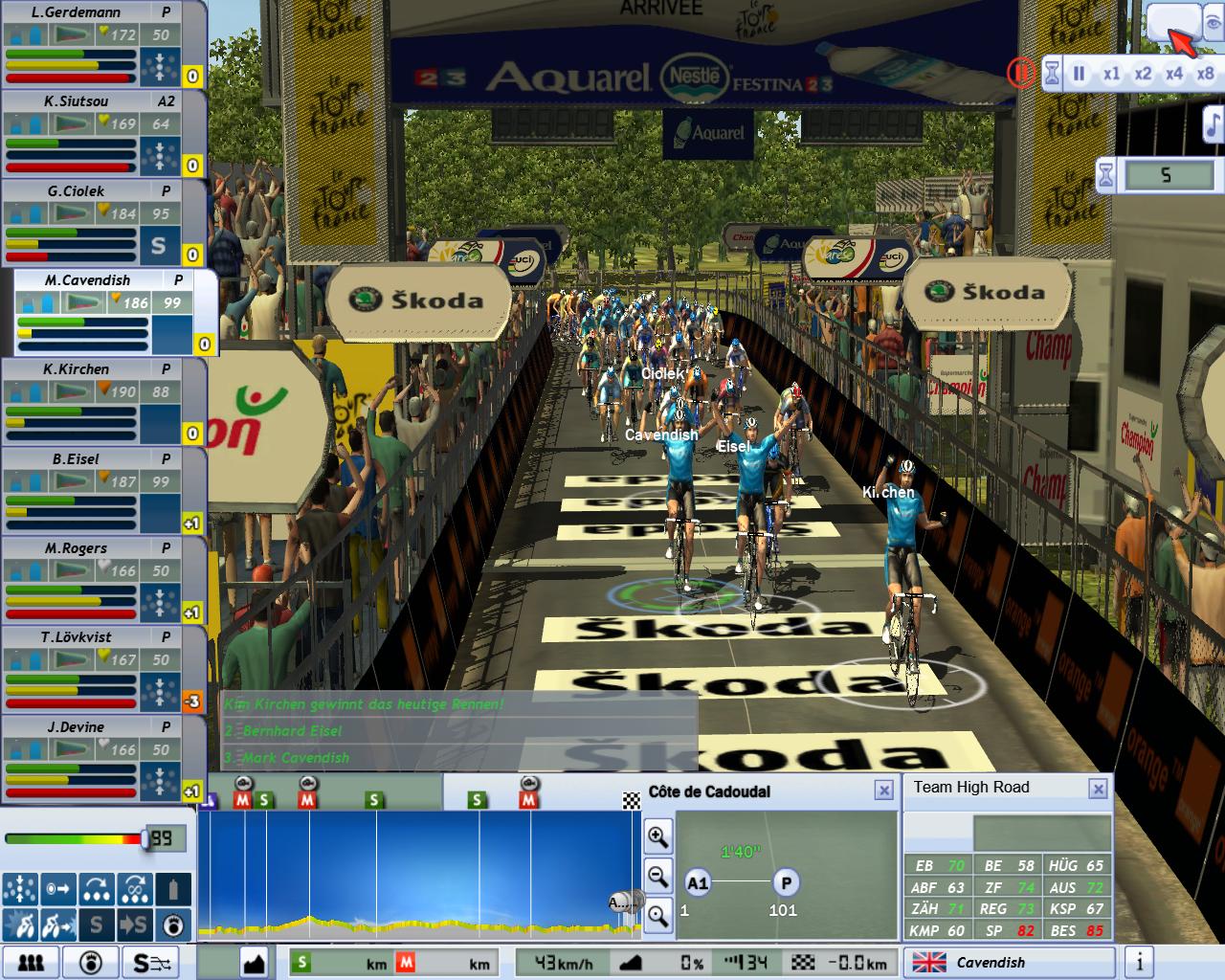 2.Before the masssprint started,i had attacked with Eisel with Cav and Kirchen on conterattack.Eisel just should launch the"sprint" for Kirchen and I was very surprised when Eisel and even Cav could hold the tempo. Ciolek was the only of my men who was really "sprinting".