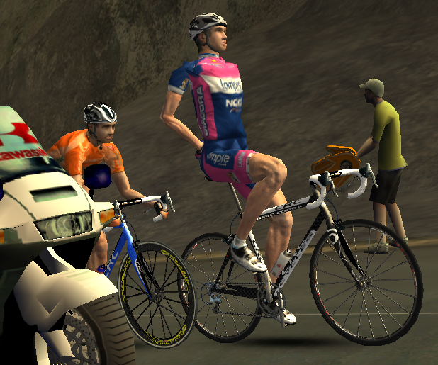 i had one like this only it was in a sprint. it was lampre again and with about 5k to go the rider decided to start stretching his back while he was leading his team mate out:lol: