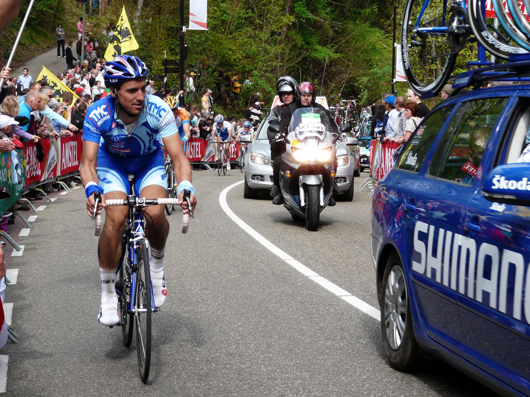 Peleton Climbing the Cauberg with Thomas Dekker near the Front
