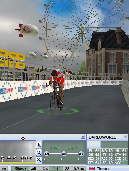 Geraint Thomas again rides past the London Eye. The graphics are not as impressive as the PPDB version though.