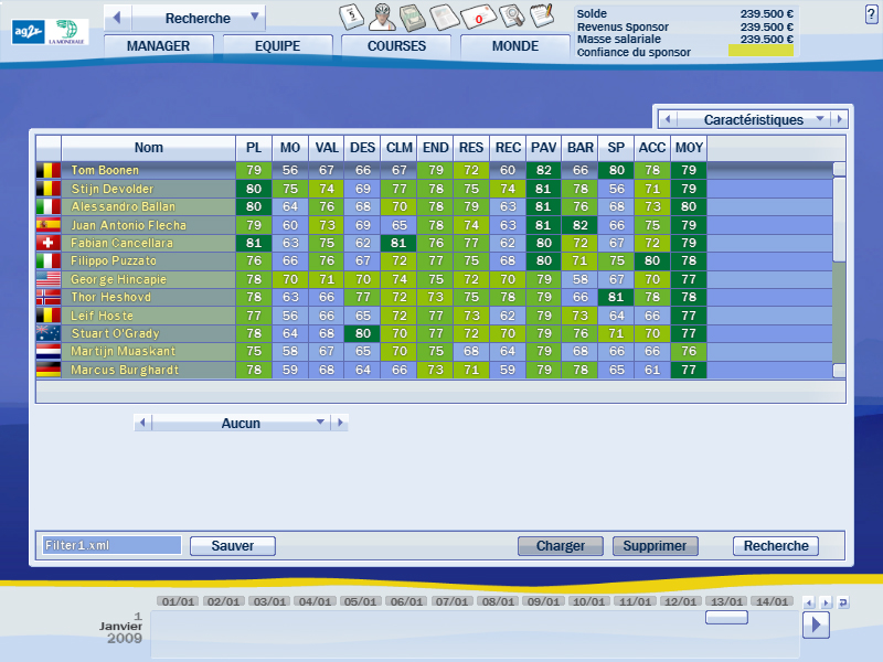 Pozzato and Cancellara need to have at least 81 on cobblestones.