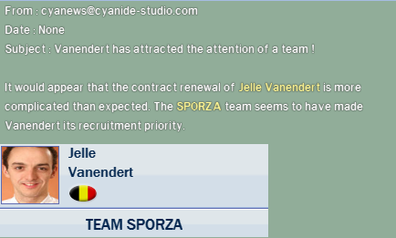Team Sporza is my custom team. Vanendert rides for my team. So what's the problem?