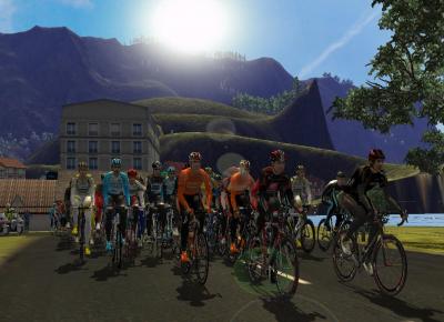 The pack at the start of GP Di Lugano.In the background the wonderful landscape of Lugano